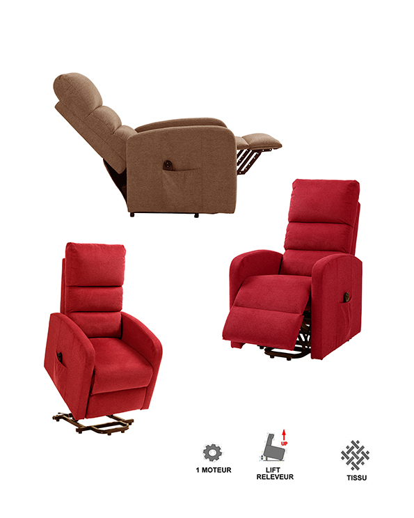 Nombreux relax avec lift (releveur) et si besoin, des poignées en bois solide ou des accoudoirs design creux pour préhension plus accentuée