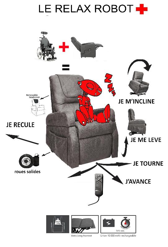 Relax-robot: un relax confortable que vous pilotez vous-même et qui, outre son rôle de relax, vous conduit dans tout votre appartement, prolongeant ainsi votre indépendance
